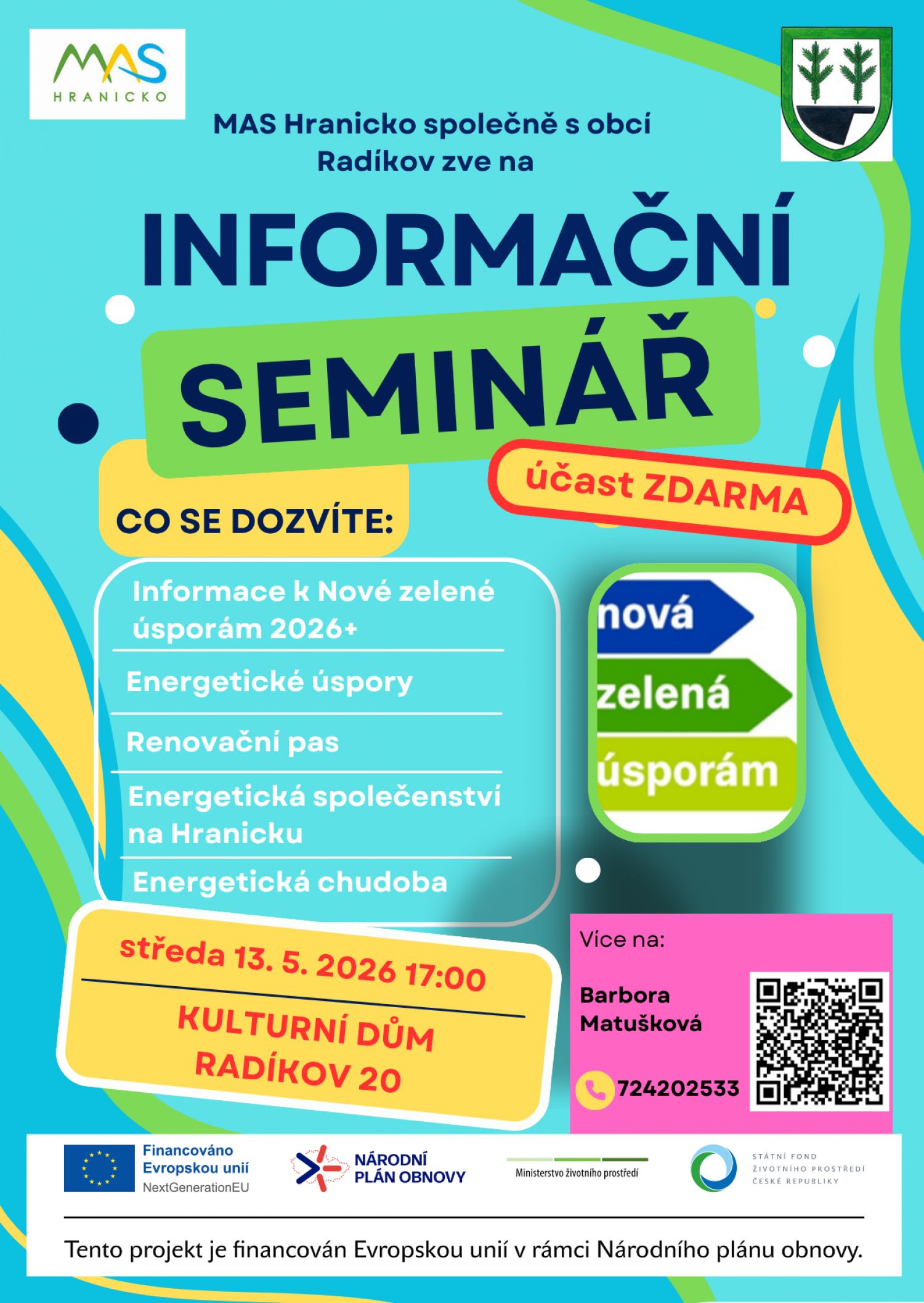 Také na Radíkově se bude konat další z informačních osvětových seminářů