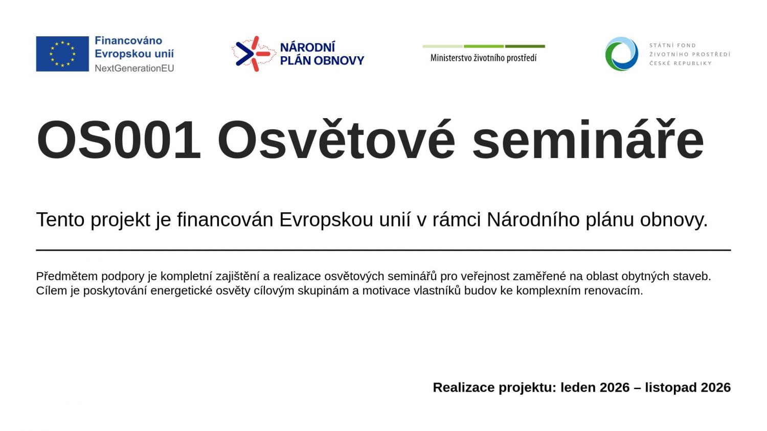 Od ledna 2026 startujeme s realizací tzv. osvětových seminářů.