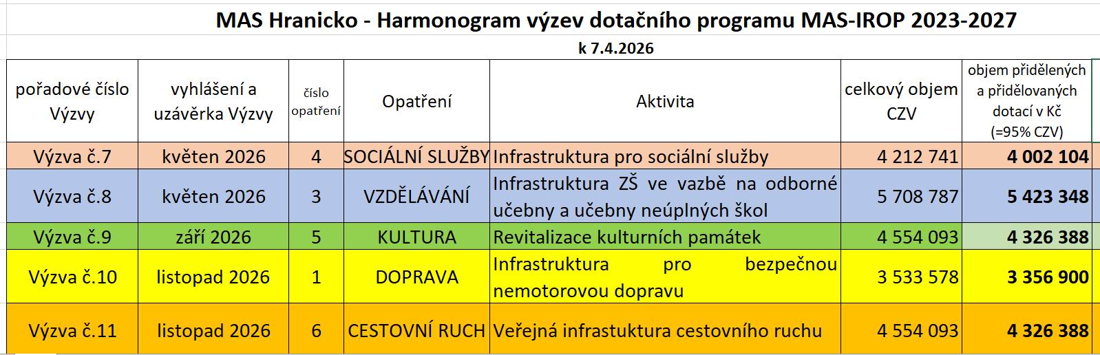 Dotační program MAS-IROP se rozbíhá po zhruba roční přestávce. MAS Hranicko v 6 předchozích výzvách rozdělila cca 37 milionů Kč a tím vyčerpala téměř celou přidělenou alokaci. Díky tomu splnila milník stanovený řídícím orgánem a byla jí pro rok 2026 uvolněna zbylá rezervovaná alokace.