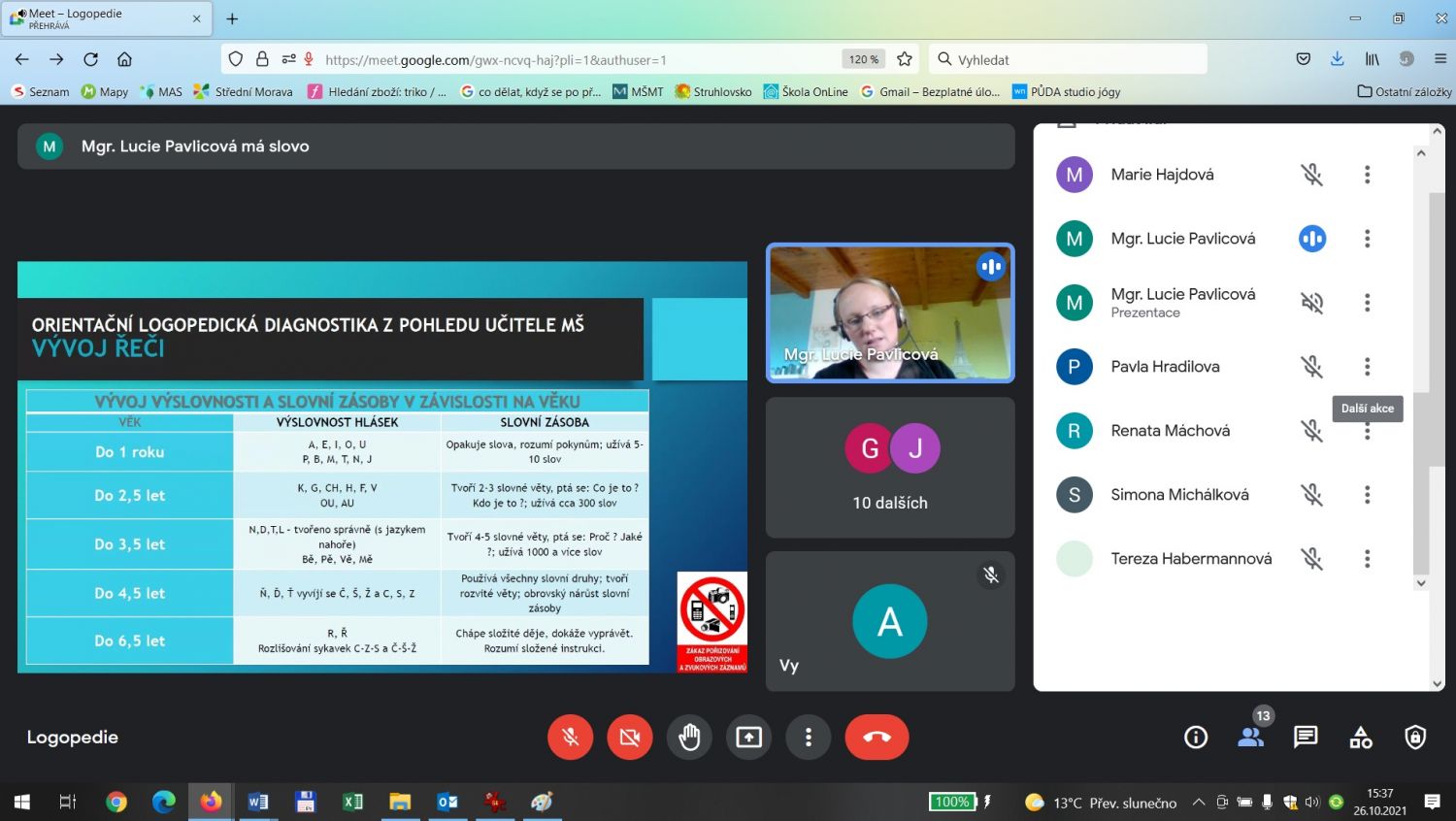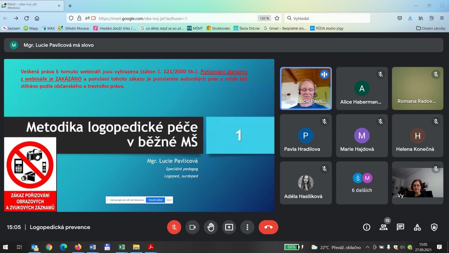 Na konci září jsme rozjeli sérii celkem pěti webinářů pod vedením logopedky Mgr. Lucie Pavlicové. Každý z webinářů je zaměřený na jednu oblast spojenou s vývojem řeči. Webináře jsou velmi praktické, prokládané příklady a ukázkami z praxe.