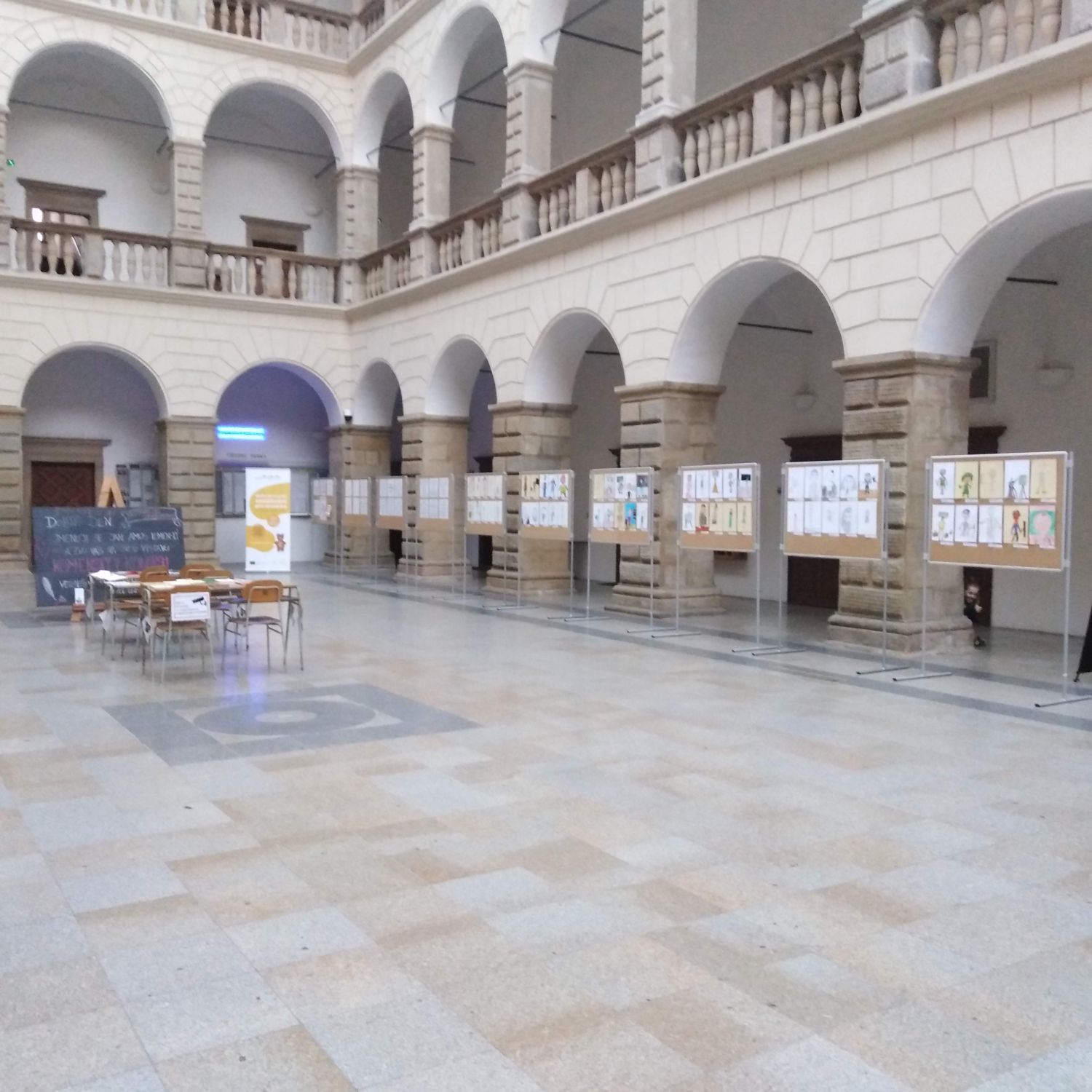 Výstava obrázků ve dvoraně zámku
